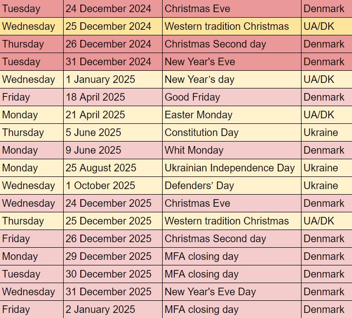 The Embassy is closed every Saturday and Sunday and on the following holidays: