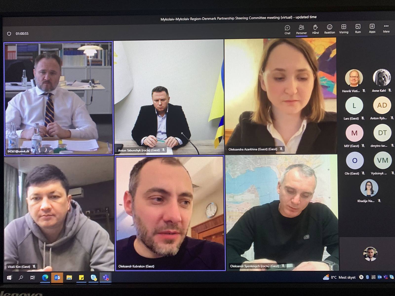 The meeting took place online, with the participation of Dan Jørgensen – Minister for Development Cooperation and Global Climate Policy, Oleksandr Kubrakov – Deputy Prime Minister for Restoration of Ukraine, Minister for Communities, Territories and Infrastructure Development, Vitaliy Kim - Head of Mykolaiv Regional Military Administration, Mr. Oleksandr Sienkevych - Mayor of Mykolaiv, Mr. Anton Tabunshchyk - Head of Mykolaiv Regional Council.
