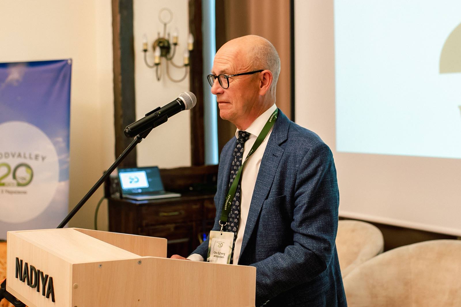 In his speech the ambassador mentioned that Danish farmers have been active in Ukraine since the early nineties. One of them was the founding father of Goodvalley, Mr. Tom Axelgaard, who made his first visit to Ukraine in 1992. Now Goodvalley is the second biggest pork producer in Ukraine.