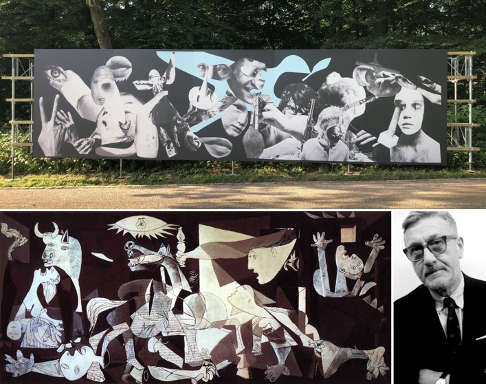 Alongside the sculpture project, Sviatchenko has created another collage work as a print on aluminum with the title "Kharkiv. Riders of Hope" which is also on show at the unveiling of HOPE, where it is temporarily set up. Here he interprets Picasso's famous work “Guernica” from 1937. He transfers the historical war tragedy in the Spanish city to Ukrainian Kharkiv.