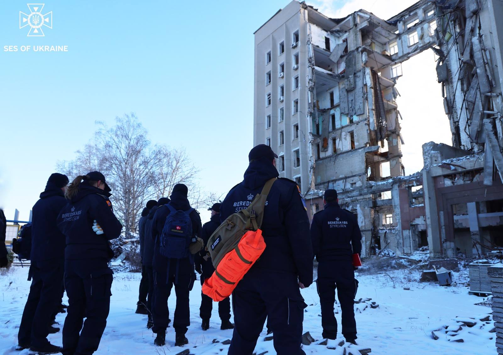 The visit to Ukraine also included a memorial ceremony in honour of the rescuers who lost their lives due to the Russian invasion held at the Memorial Wall outside St. Michael’s Cathedral, visits to SESU fire stations where Danish equipment is in use, as well as field visits to “invincibility points” located at the left bank of Kyiv, impact sites and bomb shelters. The DEMA delegation also visited Mykolaiv where they learned about the work performed by Ukrainian rescuers.