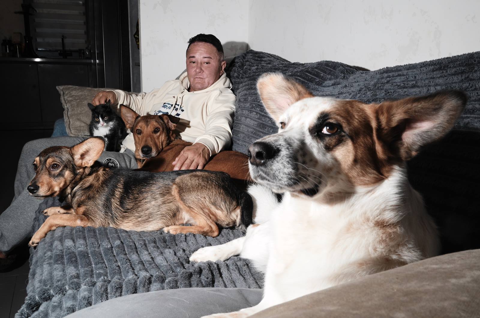 I have nothing — no house, no apartment. But I raised money and bought a machine for animal sterilization. I asked my photographer friend for help. Since then, we go on animal rescuing together. It's impossible to do it without a catcher — stressed animals are afraid of people, so catching them is difficult. Once my friend evacuated an Alabai — a giant gray dog who looked like a wolf. I said: don't approach him, it can be dangerous. But the friend didn't listen and went for it. He talked to the dog as if it were a human, said a bunch of nice things, and almost kissed him. And finally, he carried the dog out of the house in his hands.