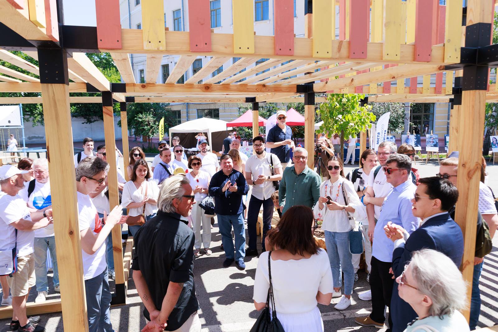 The space was designed by Danish urbanist Mikael Colville-Andersen, applying the principles of tactical urbanism — low-cost, fast, and flexible interventions that bring urban spaces to life. During his remarks, Mikael stated: “The technique of tactical urbanism is well known around the world. Low-cost, fast, effective interventions to bring urban spaces to life. We did the world's largest tactical urbanism project — and we did it on the most historic square in this proud capital — and we did it during a war, for the mental and physical health of Ukrainians.”