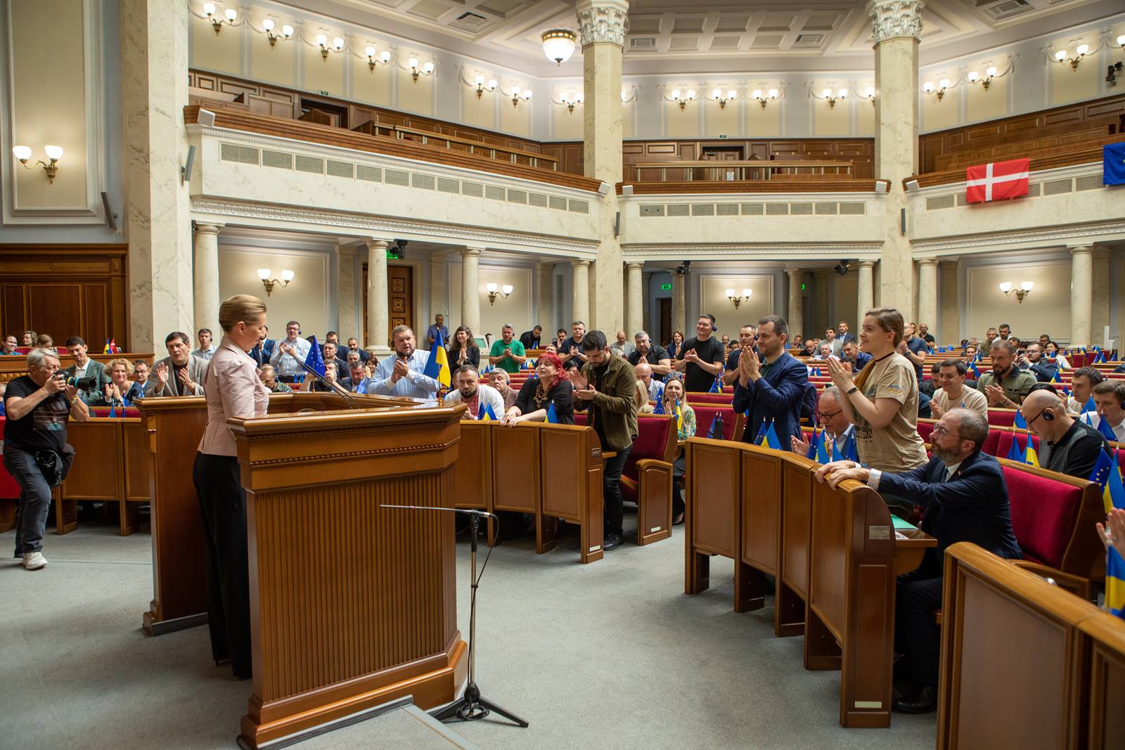 Промову Прем’єр-міністра у Раді зустріли бурхливими оплесками; Прем’єр-міністр підкреслила, що боротьба, яку веде Україна, є спільною для Данії та Європи.
